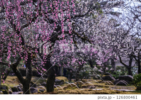 【日本三名園】特別名勝 後楽園の春 池と松と桜1 岡山県岡山市北区