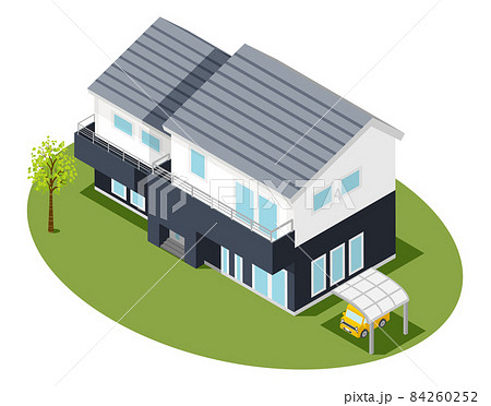 小さな庭とカーポートのある一戸建ての住宅 perming 写真素材