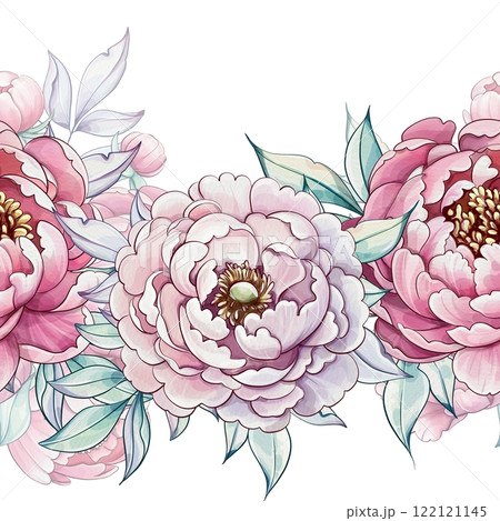 A stunning array of watercolor peonies displays a blend of soft pinks and whites, celebrating the beauty of spring and natures elegance seamless pattern, ornament