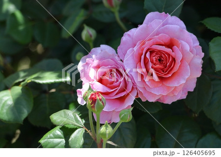5月に咲いた美しいピンク色のチューリップの花「メントン」