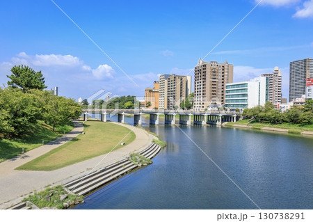 青空と街並みの水鏡[乙川/愛知県岡崎市康生町]