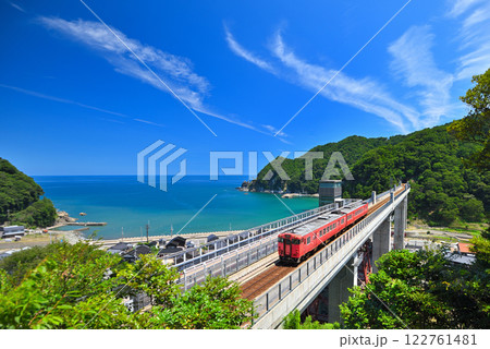 関西・近畿・餘部駅(余部駅)・空を飛ぶような余部鉄橋を渡る山陰本線の特急はまかぜ・兵庫県香美町(8)