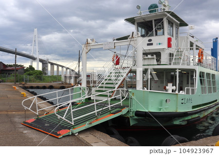 富山県営渡船 越の潟発着場と新湊大橋(あいの風プロムナード堀岡方面)