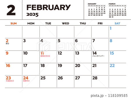 2025年マンスリーカレンダー(2月)祝日・行事入り卓上カレンダー