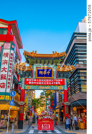 日本の横浜都市景観 横浜中華街(慶祝中華人民共和国成立70周年・慶祝日中国交正常化47周年)