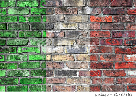 レンガの壁に描かれた、イタリア国旗のデザイン