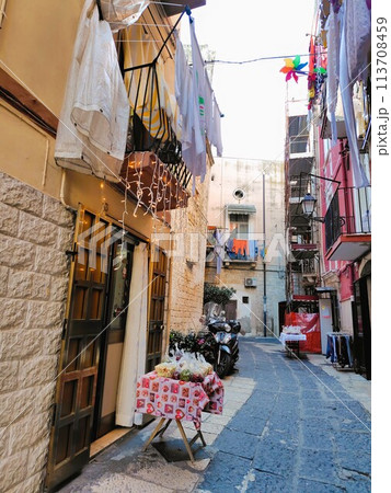 イタリア旧市街 家の窓と植物