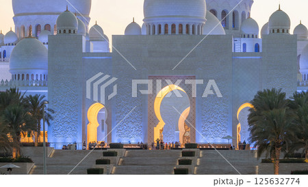 Sheikh Zayed Grand Mosque in Abu Dhabi day to night timelapse after sunset, UAE