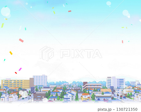 住宅街 パステルカラー 都市 街並み 背景 ポップ