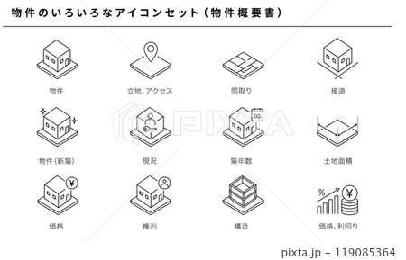 物件のいろいろなアイコンセット(物件概要書)のアイコンセット、ベクター素材