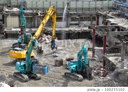 鉄筋コンクリート建物の解体工事現場風景