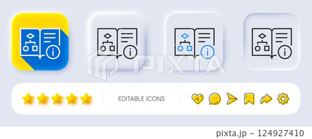 Instruction info line icon. Neumorphic, Flat shadow, 3d buttons. Technical information sign. Line instruction info icon. Social media icons. Vector
