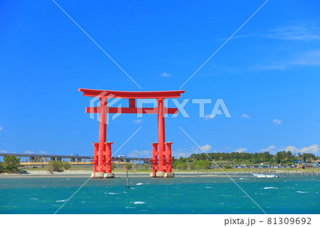 浜松市、夕暮れ時の浜名湖の大鳥居