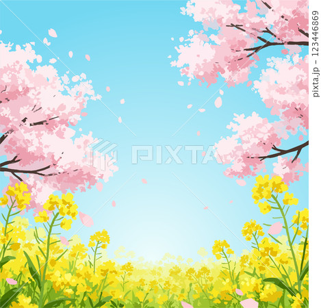菜の花と桜と蝶 桜吹雪 サクラ ソメイヨシノ