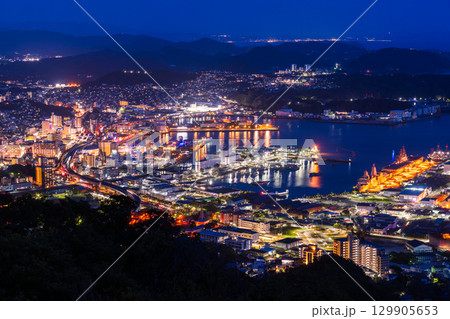 (長崎県)弓張岳展望台から眺める佐世保中心街・港 夕景