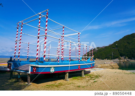 砂浜に置かれている祭りの御座船2 岡山県笠岡市小飛島