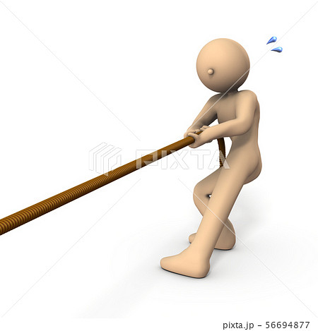 力強くロープを引っ張るキャラクター