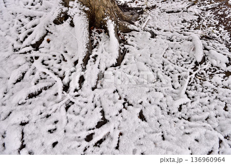 雪が積もって静まりかえる寒川一之宮公園緑道
