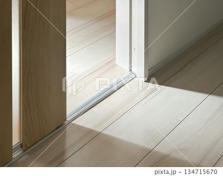 床に当たるドアの外から差し込んだ太陽の光