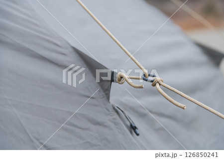 【中津川河川敷でオートキャンプ テントのガイロープ】