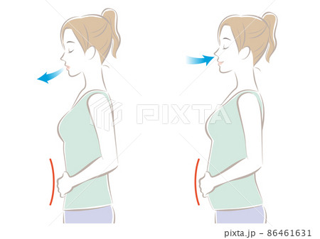 腹式呼吸をする女性