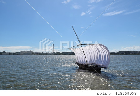晴天の霞ヶ浦の帆引き船 茨城