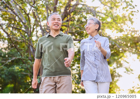 ウォーキングエクササイズに励むシニア夫婦