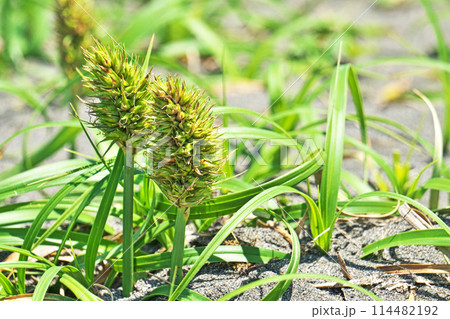 春の鳥取砂丘と砂丘植物 鳥取県 鳥取砂丘 コウボウムギ