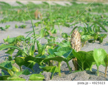 (千葉県/いすみ市/大原海岸) 浜辺に咲く植物 弘法麦(コウボウムギ)/ハマヒルガオの葉