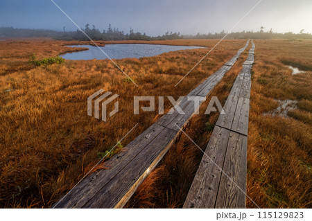 朝霧の吾妻連峰・弥兵衛平の湿原