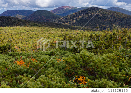 秋色の吾妻連峰・弥兵衛平の湿原と明月荘