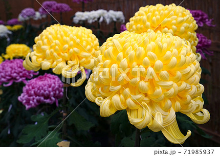 黄色い菊の花 大菊(古典菊)厚物 黄色 菊まつり