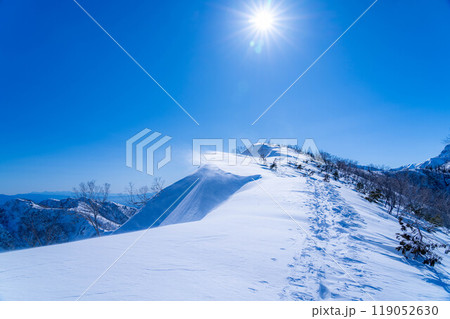 【雪山素材】冬の五竜岳に現れる雪渓・武田菱【長野県】