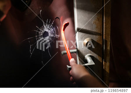 バールで強盗に入ろうとする犯罪者のベクターイラスト モノクロ シンプル