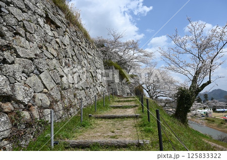篠山城(兵庫県)の石垣とソメイヨシノ
