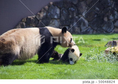 和歌山県南紀白浜のアドベンチャーワールドのジャイアントパンダの親子(良浜と彩浜)