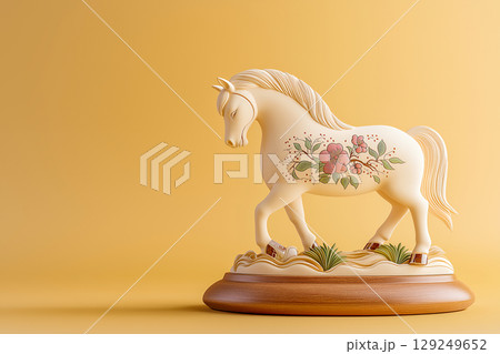 花模様が浮かぶ美しい馬の陶器風干支白馬のアート置物