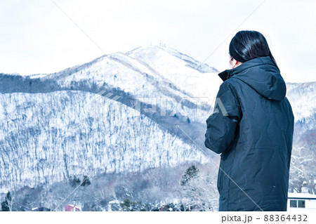 秋の夕暮れに佇む若い女性 すすきなし 背景なし