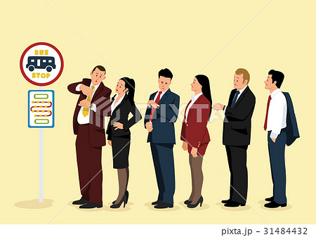 People queue and lining up. Vector artwork of crowd queuing in line waiting their turns. A person is getting impatient and cutting the line. Some masses are scattered and standing everywhere.