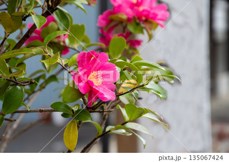 冬に咲くアイスチューリップ 街並みに映えるピンクの花