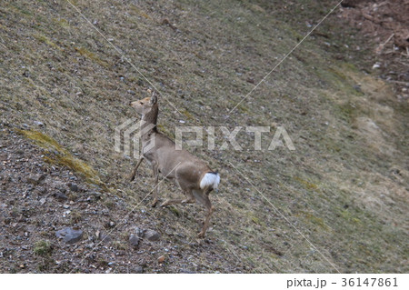 兵庫の山でであった日本鹿が気付いて山を駆け上がり逃げていくところ