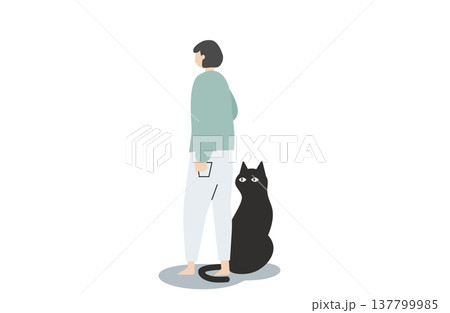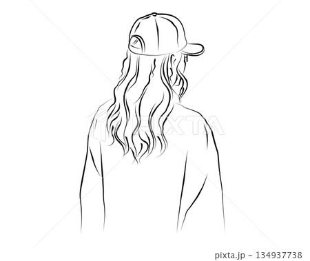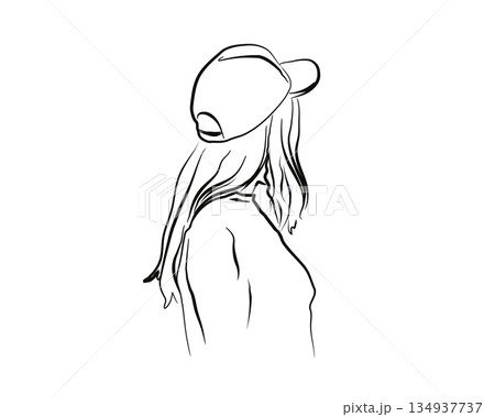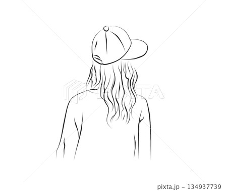 インクタッチの線画 キャップをかぶった女性の後ろ姿