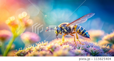 Blurred Summer Background with Wasp on flower Close up