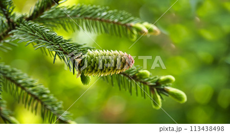Close up of a green fir cone in blurred background