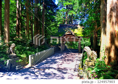 中国地方・大山隠岐国立公園・大神山神社奥宮、本殿から見下ろす後向き門・鳥取県大山町(2)