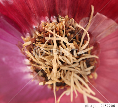 Close up of red onion root.