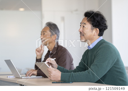セミナーを受けるシニア男性