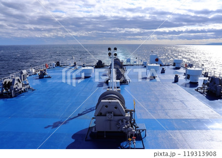 航海中の船舶後方デッキ