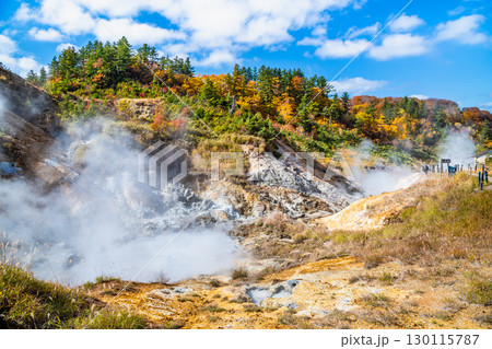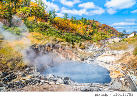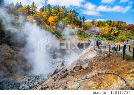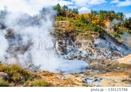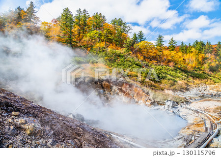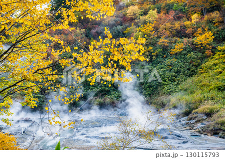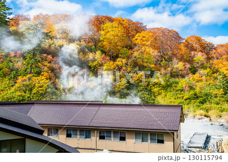 十和田八幡平国立公園の後生掛温泉の紅葉と噴煙