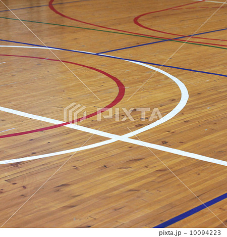 Wooden floor of sports hall with marking lines